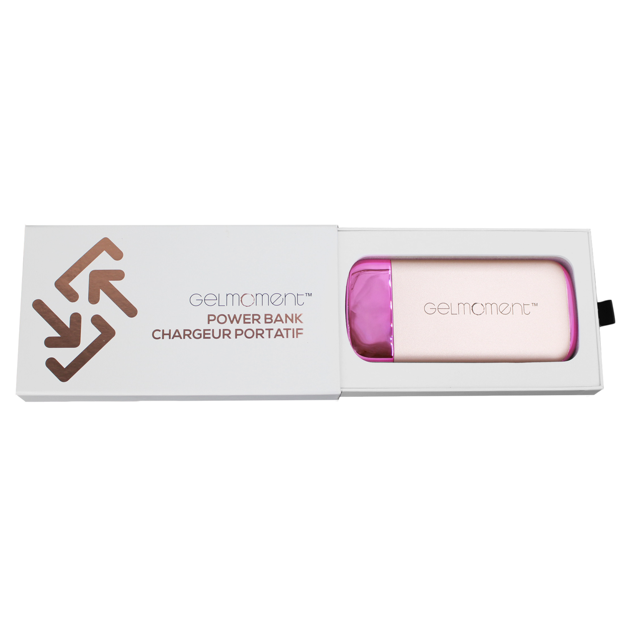 Available with either pink or black accents, this GelMoment branded Power Bank will be an eye-catching conversation starter wherever you go. Perfectly sized to fit into your Beauty Bag, purse, or the pocket of your favourite jeans, this Power Bank packs a punch!